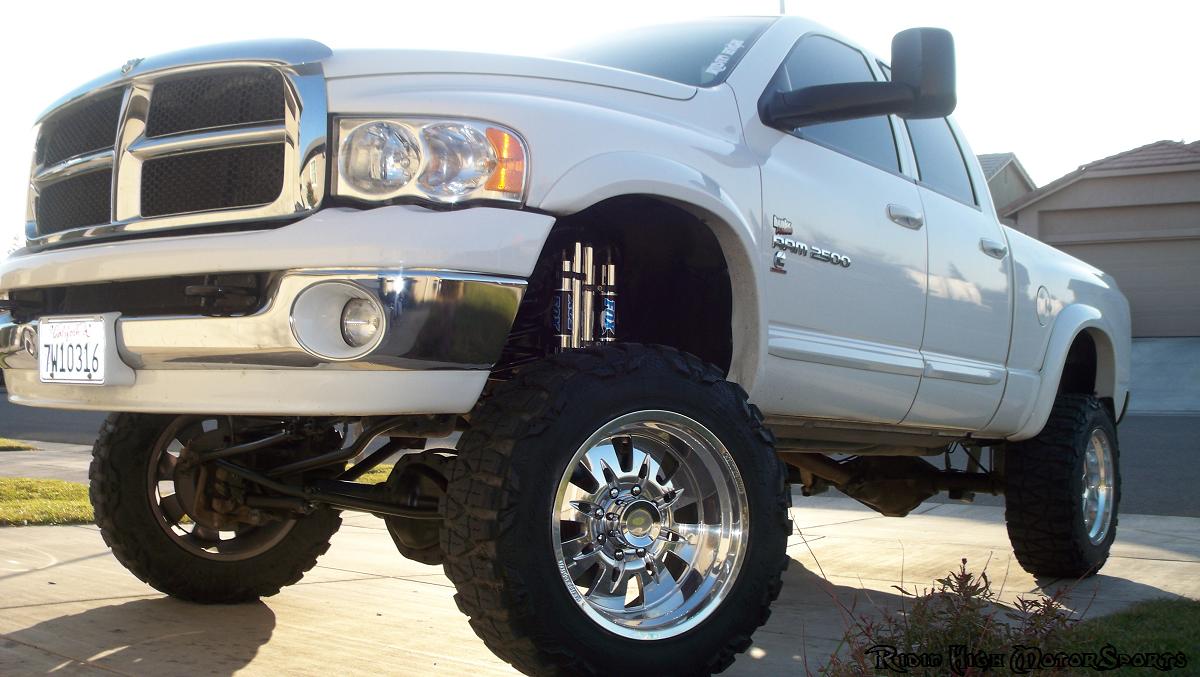 Revtek 6" Lift with 2" Spacers in the front with Dual Chromed out Fox Resevoir 2.0 Shocks on the front mounted to Fabtech Shock Mounting Kit. 20x12 Centerline Eclipse Rims wheels were added with 35x12.50 Nitto Mud Grapplers to get the mean look.